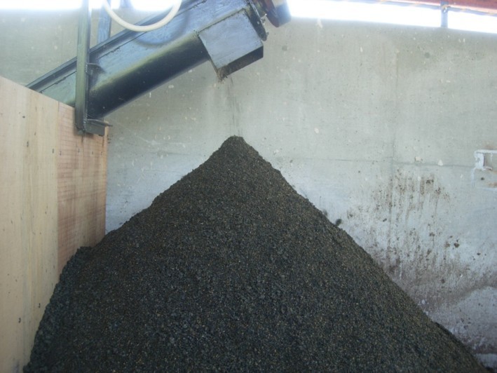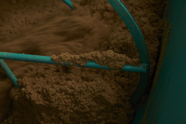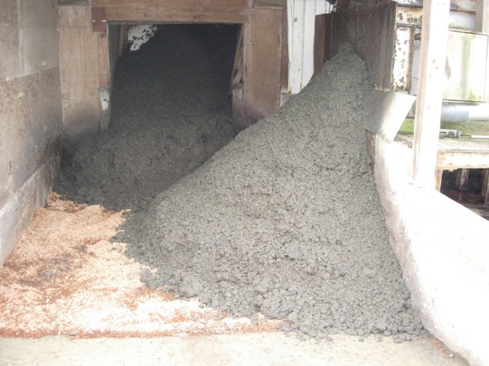 ベトベトの脱水ケーキ、運搬や処理に大きな手間とコストが必要。