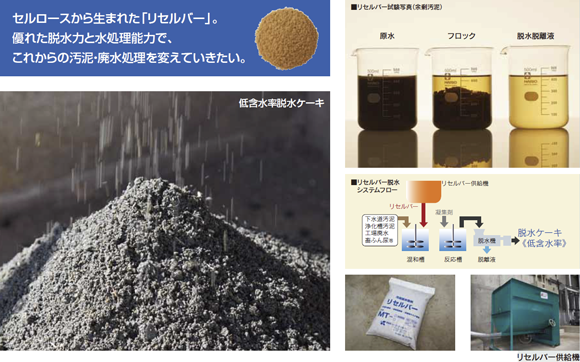 製品名は3Rの「リ」、セルロースの「セル」、ファイパーの「バー」を組み合わせてできました。自然由来の製品でリサイクル社会に大きく貢献したいとの想いが込められています。かつて処分対象でしかなかった汚水・汚泥は、社会を支えるエネルギー源や資源としての役割を期待されています。 「リセルバーMTシリーズ」の持つ様々な作用でこれらに貢献していきます。